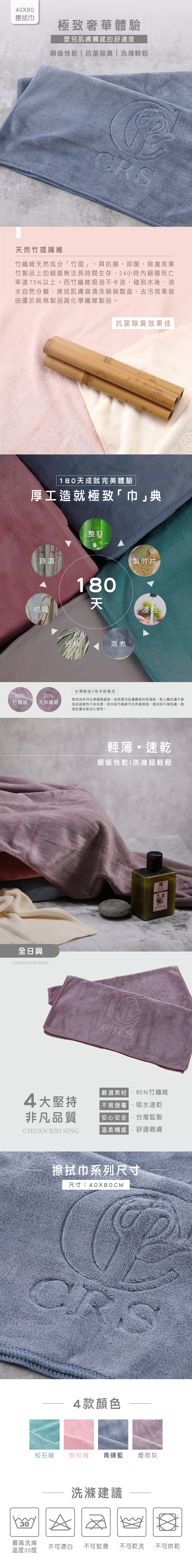 ● 瞬吸快乾,洗滌超輕鬆