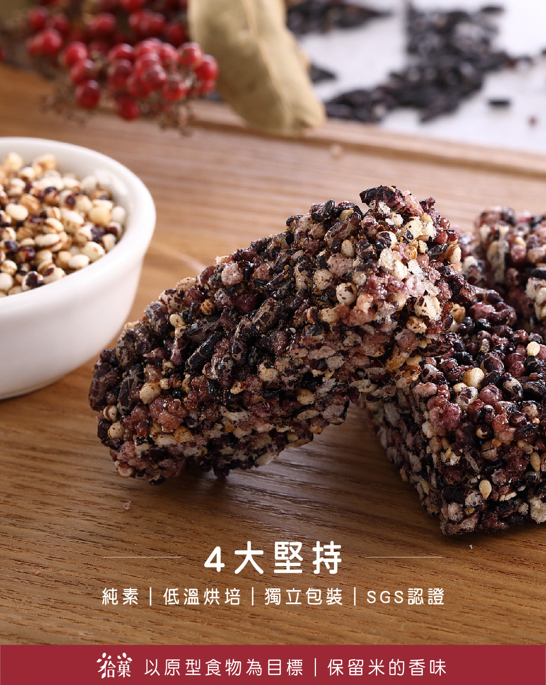 .內容物:黑米、紫米、棕梠油、麥芽糖、海藻糖、紅黎麥、黑芝麻、白芝麻、食鹽